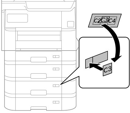 Als u een optionele kast gebruikt, plaats deze vooraf onder de bodem van de papiercassette.