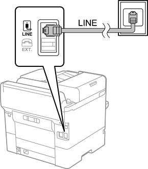 یک کابل تلفن را از فیش دیواری یا درگاه PBX به درگاه LINE در پشت چاپگر وصل کنید.