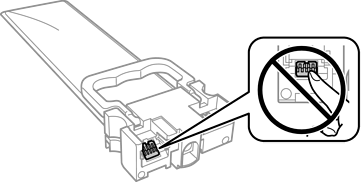 توزیع کننده های جوهر بیرون آورده شده ممکن است موجب ریختن جوهر در اطراف پورت تغذیه جوهر شوند، بنابراین مراقب باشید هنگام بیرون آوردن توزیع کننده های جوهر، جوهر در محیط اطراف نریزد.