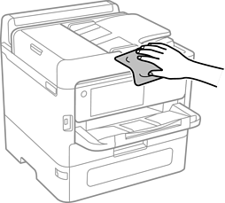 اگر اجزاء یا بدنه دستگاه کثیف یا آلوده به گرد و خاک هستند، چاپگر را خاموش کنید و آنها را با استفاده از یک دستمال نرم و تمیز که در آب نمدار شده است، تمیز نمایید. اگر کثیفی برطرف نمیشود، با افزودن مقدار کمی شوینده ملایم به دستمال مرطوب امتحان کنید.