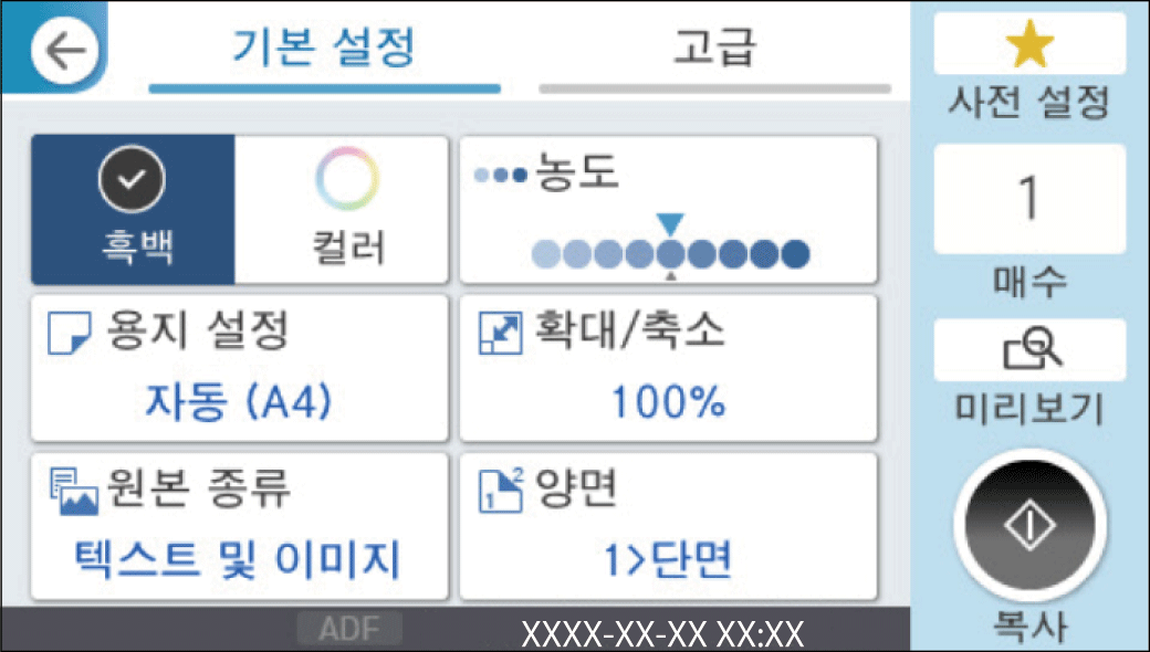 홈 화면에서 복사를 선택합니다.