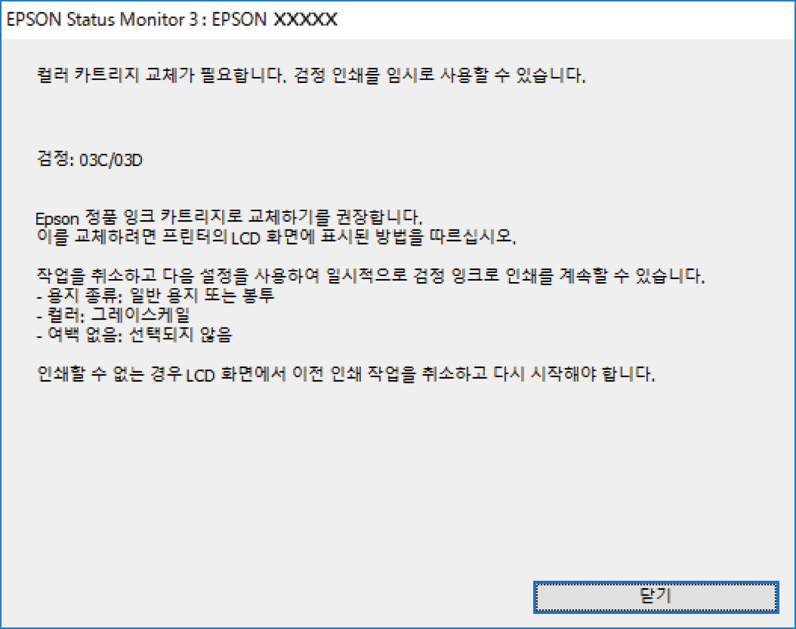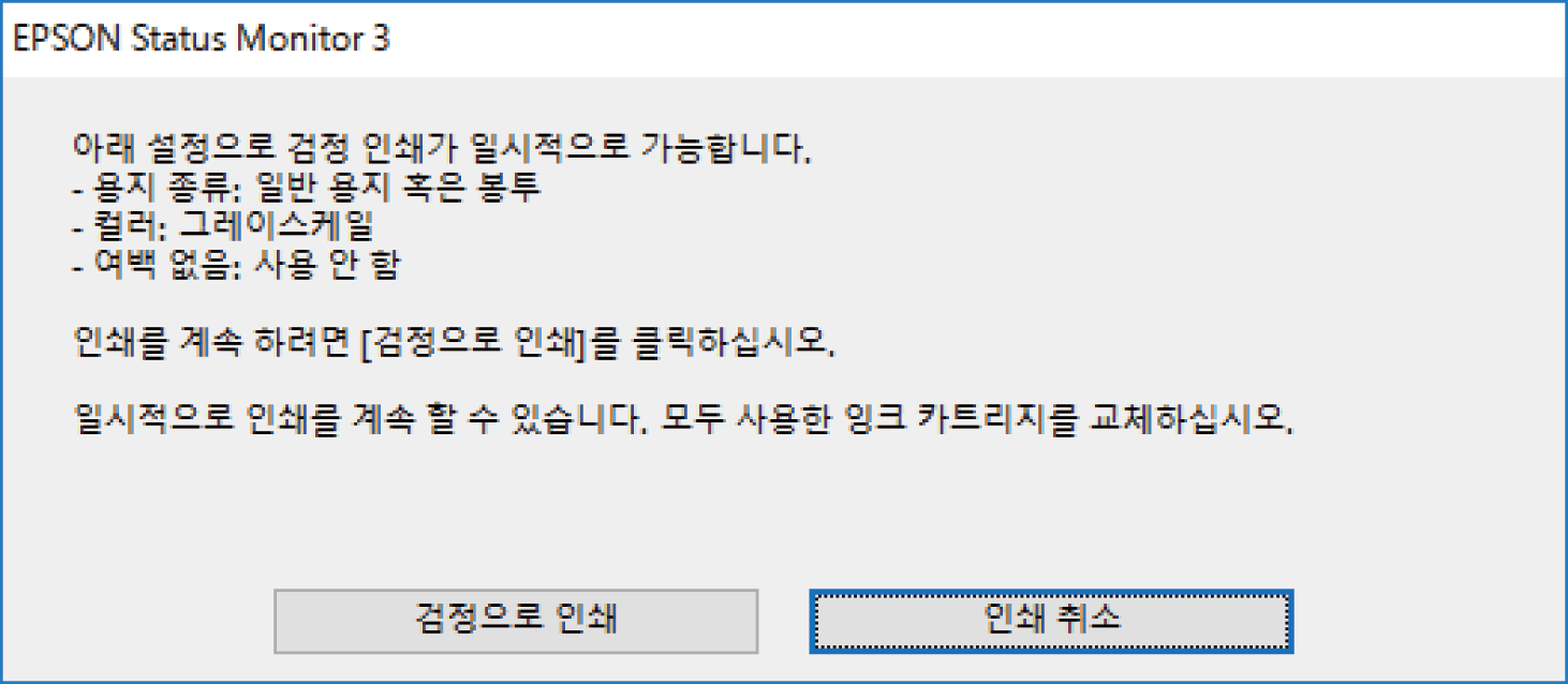 다음과 같은 창이 표시되면 검정으로 인쇄를 선택합니다.