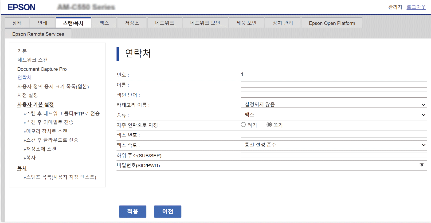 등록된 주소를 자주 사용하는 주소로 설정할 때 선택합니다. 자주 사용하는 주소로 설정하면 팩스 및 스캔 메뉴의 맨 처음 화면에 표시되며 연락처를 표시하지 않고 대상을 지정할 수 있습니다. |