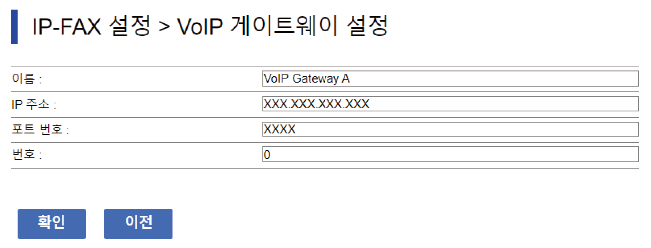 IP 팩스 송수신에 사용할 VoIP 게이트웨이를 등록합니다.