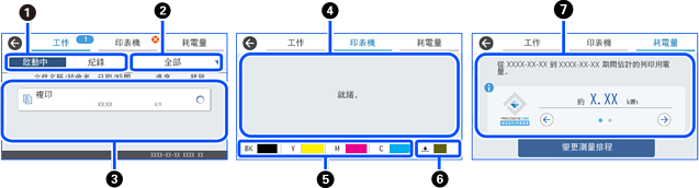 鍵以顯示 狀態 功能表。您可以檢查印表機或工作的狀態。