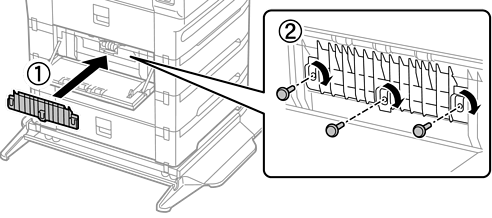 Fjern skruerne med en skruetrækker, og fjern så den indvendige låge på bagsiden af printeren.