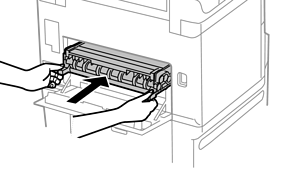 Opsamlingsvalserne til papirkassetten 1 og papirkassetten 2 til 4 er forskellige. Kontroller pilens retning i midten af opsamlingsvalserne, og sørg for, at opsamlingsvalserne er dem til papirkassette 1. Hvis du sætter de forkerte valser i, kan printeren muligvis ikke indføre papiret.