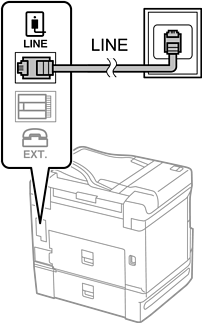 Branchez un câble de téléphone à la prise téléphonique murale ou au port PBX, puis branchez-le au port LINE situé à l'arrière de l'imprimante.