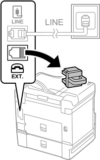 2. Подсоедините телефонный аппарат к порту EXT. с помощью телефонного кабеля.