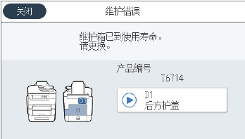 如果维护箱已到达使用寿命,在更换维护箱之前,不能执行打印以及清洗打印头,以免墨水泄漏。但您可以执行不使用墨水的操作,比如扫描。