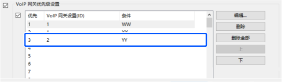 在 VoIP 网关优先级设置列表中选择要更改优先级的项目。