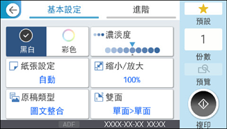 選取 [基本設定] 索引標籤,然後選取 [黑白] 或 [彩色]。