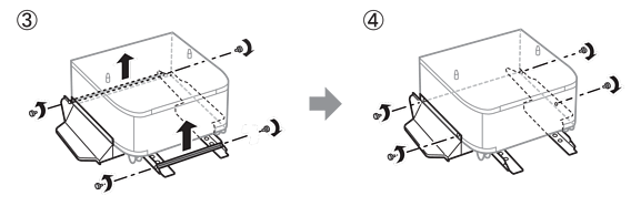 Innan du flyttar skrivaren ska du avinstallera skåpets stativ. Slutför stegen för att flytta skrivaren och utför sedan stegen i följande bilder.