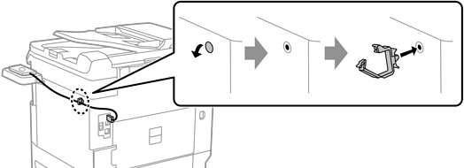 Dra av etiketten som täcker skruvhålen på skrivarens sida.