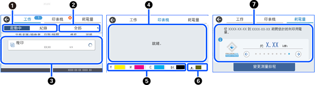 鍵以顯示 狀態 功能表。您可以檢查印表機或工作的狀態。