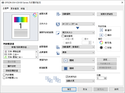 有關印表機驅動程式的詳細資訊,請參閱功能表選項。
