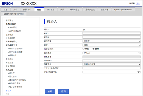 當登錄接收者至聯絡人清單時,您可選取 [IP-FAX]([IP-LAN]) 作為線路設定。