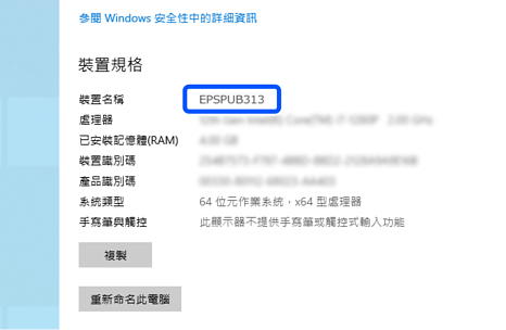 若您需要變更裝置名稱,請務必事先向電腦管理員確認,因為這可能會影響電腦管理和資源存取。