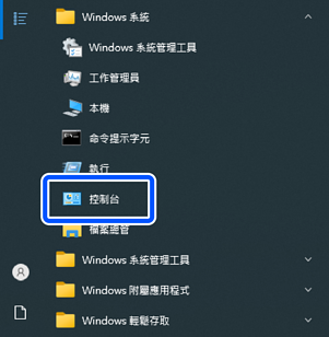 按一下 Windows 開始按鍵,然後選取 [Windows 系統] > [控制台]。