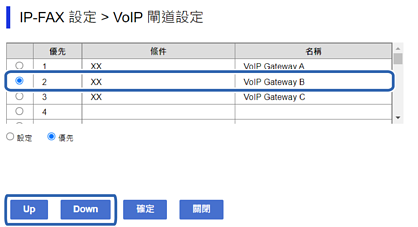 在設定 VoIP 閘道的傳送條件後設定此項目時,會顯示可進行優先順序設定的畫面。前往步驟 3。