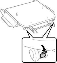 Coloque o suporte da impressora em uma superfície plana e trave as rodinhas na frente.