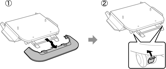 Antes de mover a impressora, desinstale o suporte da impressora. Conclua as etapas para mover a impressora e, em seguida, siga as etapas nas imagens a seguir.
