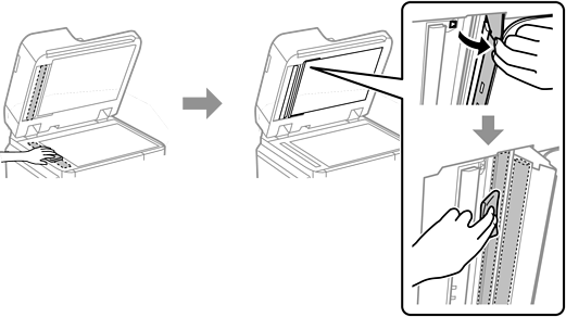 Quando as imagens copiadas ou digitalizadas do ADF estiverem manchadas ou os originais não forem alimentados corretamente no ADF, limpe o ADF.
