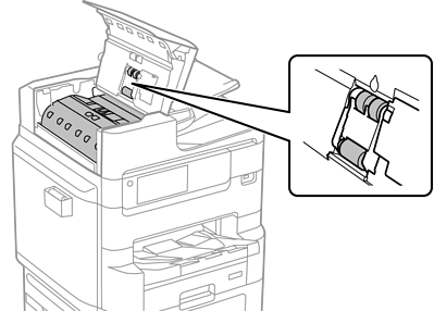 Use um pano macio e úmido para limpar o rolo e o interior do ADF.