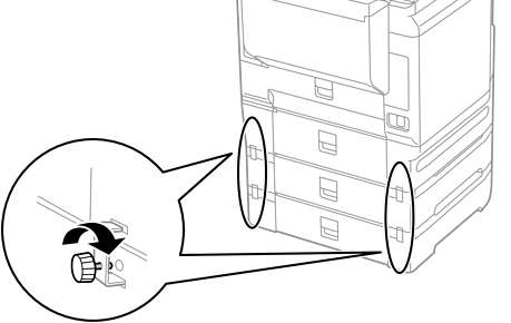 Se estiver usando várias unidades de caixa de papel, empilhe todas as unidades de caixa de papel uma em cima da outra e, em seguida, fixe-as com os parafusos.