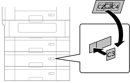 Digite uma etiqueta mostrando o tamanho do papel a ser carregado na caixa no suporte.