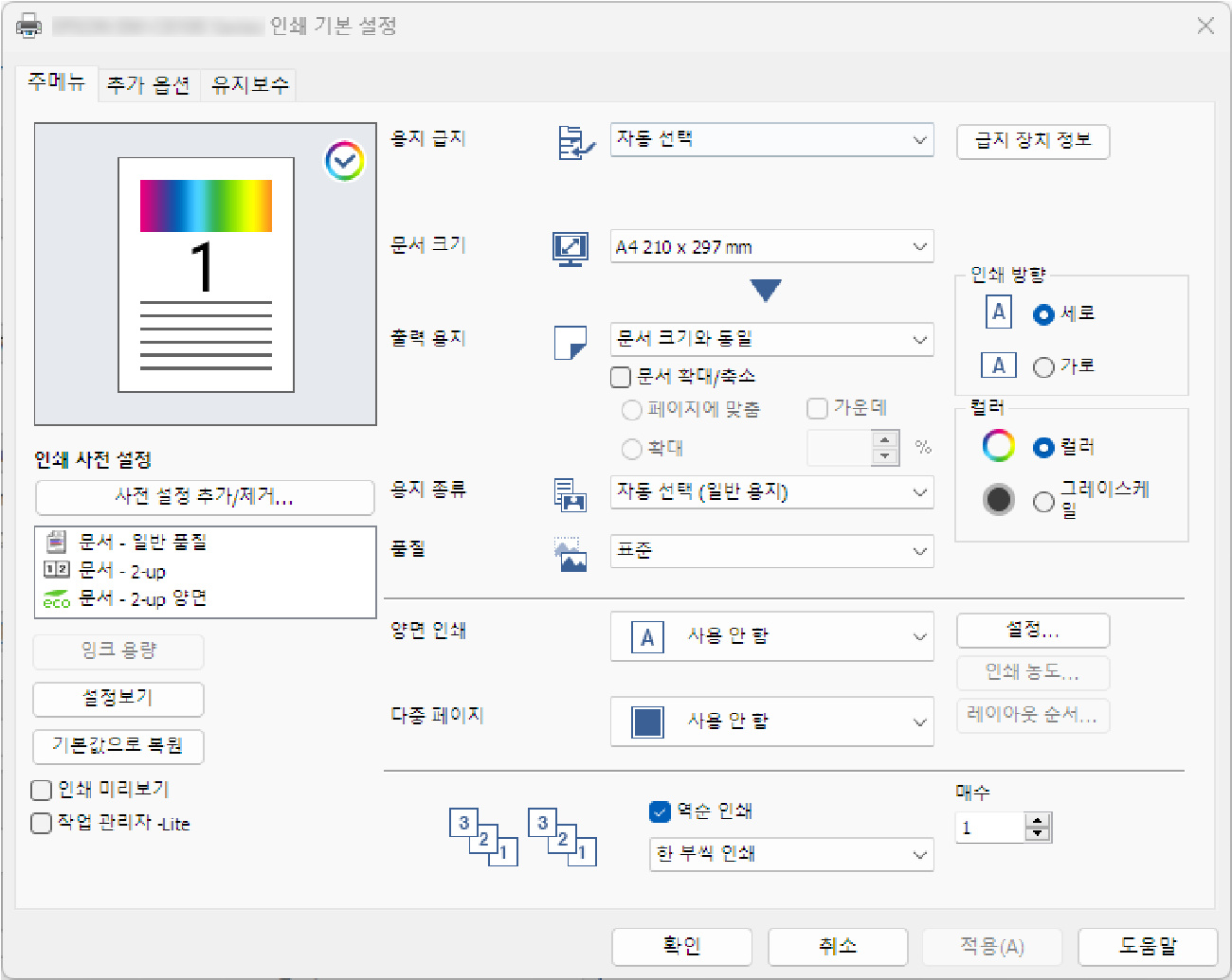 > 인쇄 > 문서 인쇄 > 컴퓨터에서 인쇄 (Windows) > 간편 설정을 사용한 인쇄