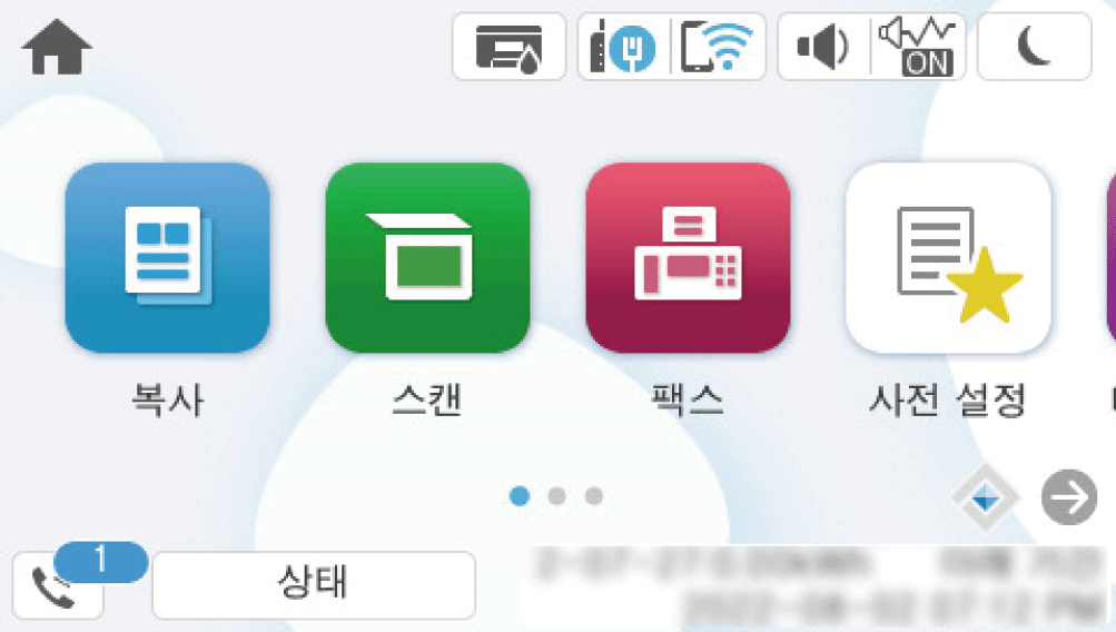 처리되지 않은 수신 문서가 있는 경우, 처리되지 않은 작업 수가 홈 화면의