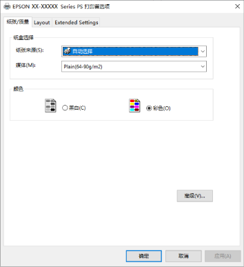 PostScript 打印机驱动程序的菜单选项