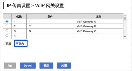在设置 VoIP 网关的发送条件后,就已经显示设置优先级的屏幕。转至步骤 3。