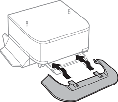إذا كانت الخزانة مثبتة بوحدة درج الورق، فأنزل الطابعة برفق على وحدة درج الورق مع محاذاة الزوايا، ثم أحكم تثبيتها بالبراغي.