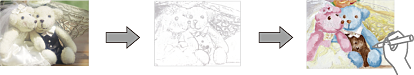 写真やイラストなどから輪郭だけを抜き出した下絵を印刷します。ペンなどで色を塗ってお楽しみください。