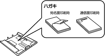 ハガキの宛名面に印刷するときは用紙種類で[ハガキ宛名面]を選択します。