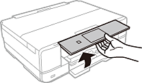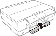 排紙トレイが出ているときは、トレイの上に何もないことを確認し、ボタンを押すか、手で押して戻してください。