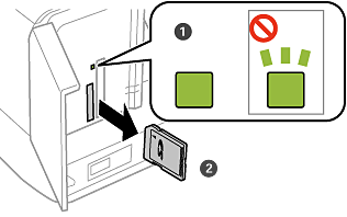 印刷などが終わったら、ランプが点滅していないことを確認して、メモリーカードを取り出します。