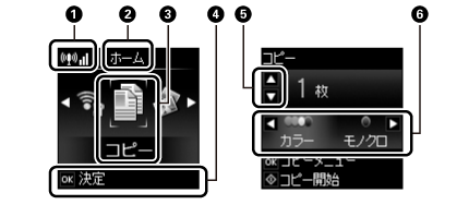 選択されているモード(この例ではホーム画面で「コピー」が選択されている)