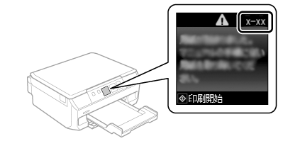 エラーが発生すると、液晶ディスプレイにエラーコード(右上)とメッセージが表示されます。