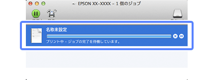 用紙をセットする前に、アプリケーションソフトで印刷(手順2〜6)を実行してください。印刷を実行し、[Dock]内の[プリンタ]アイコンをクリックすると、以下の画面が表示されますので、プリンターの画面表示に従って用紙をセットしてください。