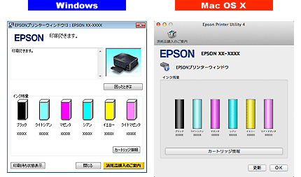 Mac OS Xでは「Epson Printer Utility」を表示します。