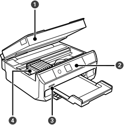 原稿をスキャンします。インクカートリッジの交換や内部に詰まった用紙を取り除くときに開けます。通常は閉めておいてください。 |