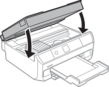 内部に手を入れるときは、操作パネルのボタンには触らないでください。プリンターが動作してけがをするおそれがあります。また、突起などでけがをしないように注意してください。