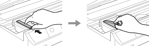 ツメを押してインクカートリッジを外し、斜めに引き上げて取り出します。