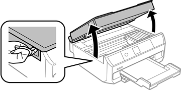 原稿カバーを閉めた状態で、スキャナーユニットを開けます。