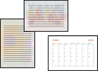 一般的な罫線入り用紙やスケジュール表、オリジナルの便箋などを簡単に印刷できます。