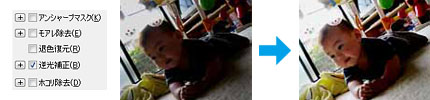 逆光で撮影されたプリント写真を、明度や彩度、カラーバランスを考慮してより自然な色調に補正できます。