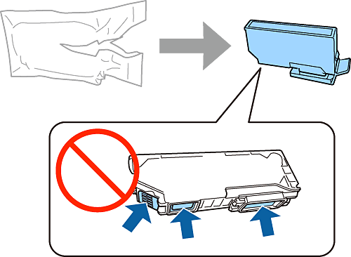 インクカートリッジの絵で示した部分には触らないでください。 |
